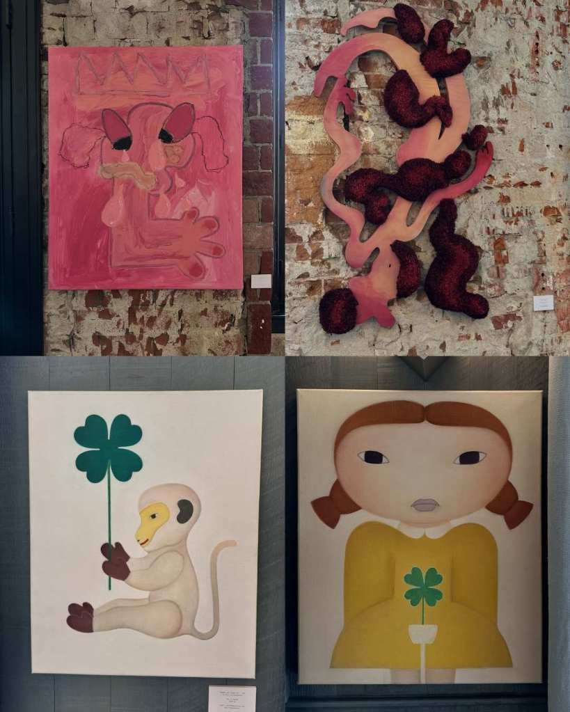 Across the works, you’ll see different takes on it. Pink that speaks. Wool that softens, but holds strength. Nature that slows things down. And Lucky, a digital icon that plays with how we show up.
