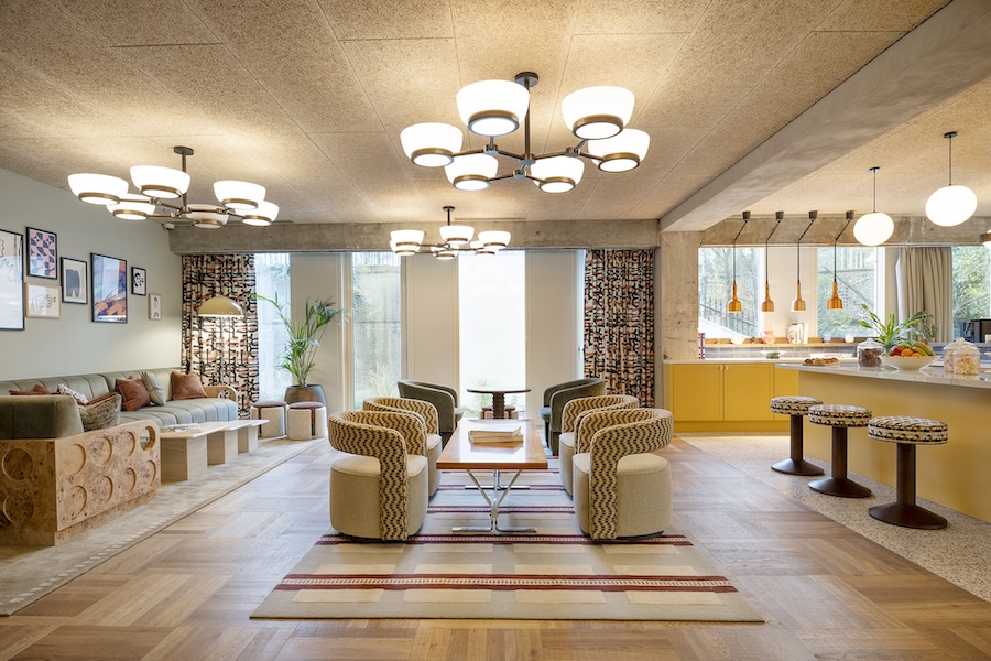 Up on floors 13 to 21, our rooms come with serious sky-high views over Brussels — not bad to wake up to. Pick from Cosy, Roomy or Biggy, depending on your vibe. Inside, it’s all 70s-inspired charm: think bold stripes, graphic rugs, pops of velvet, and warm wood finishes. Retro touches, modern comfort — all the good stuff.