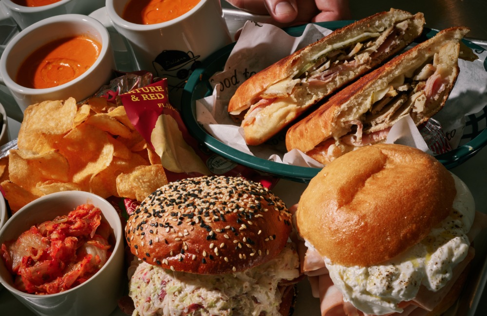 Dollars is a laid-back sandwich shop and wine bar tucked inside The Hoxton, Dublin. Inspired by New York deli culture and built around local Irish produce, it blends big flavour with no-fuss charm—offering stacked sandwiches, sweet treats, and natural wines in a space that’s casual, cool, and community-minded. By day, it’s all about espresso, breakfast sandwiches and fresh pastries; by night, it flips into a cosy spot for grilled cheese, charcuterie, and a glass (or bottle) of something brilliant.