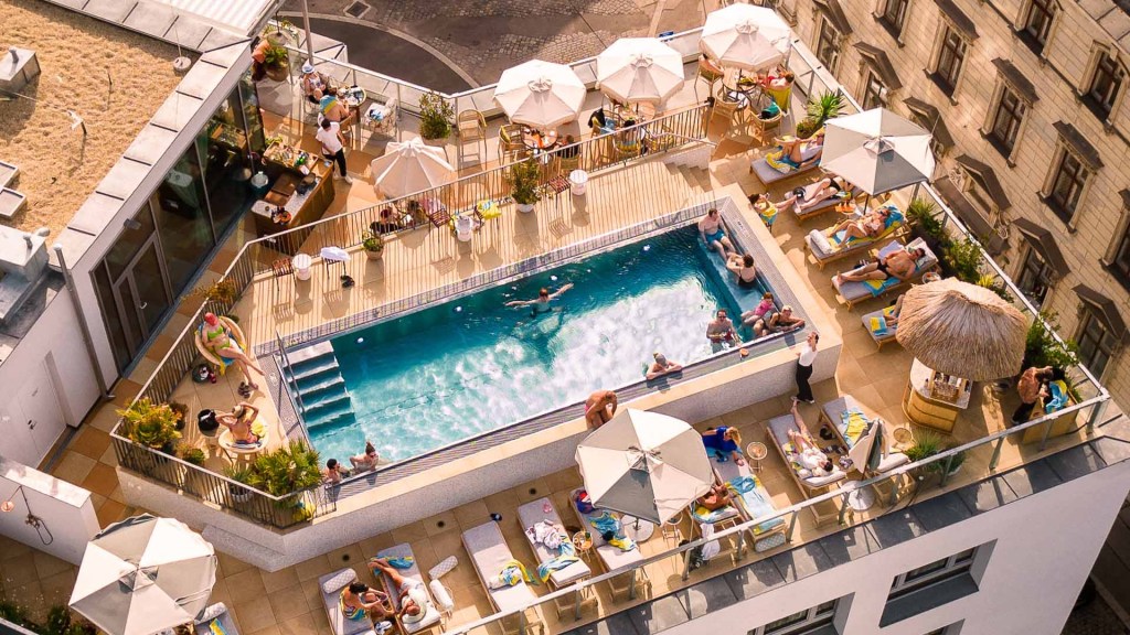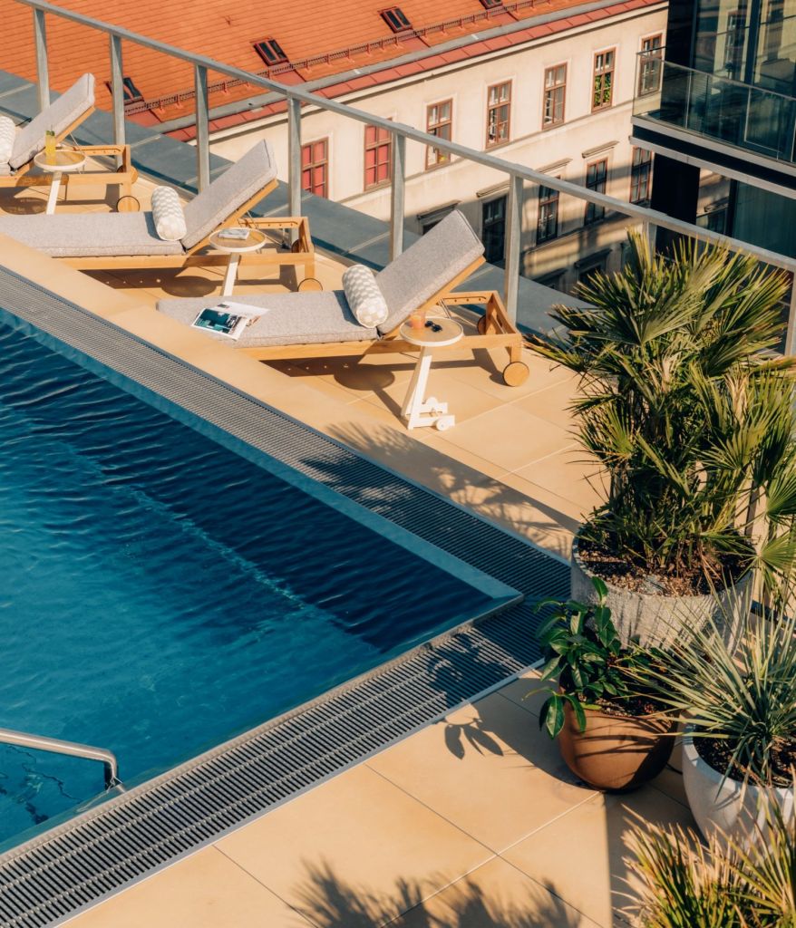 Maak kennis met ons prachtige zwembad op het dakterras met een adembenemend uitzicht over de stad bij Cayo Coco. Kom hier, midden in het hart van Wenen, tot rust, laad je batterijen weer op en geniet van de zon.