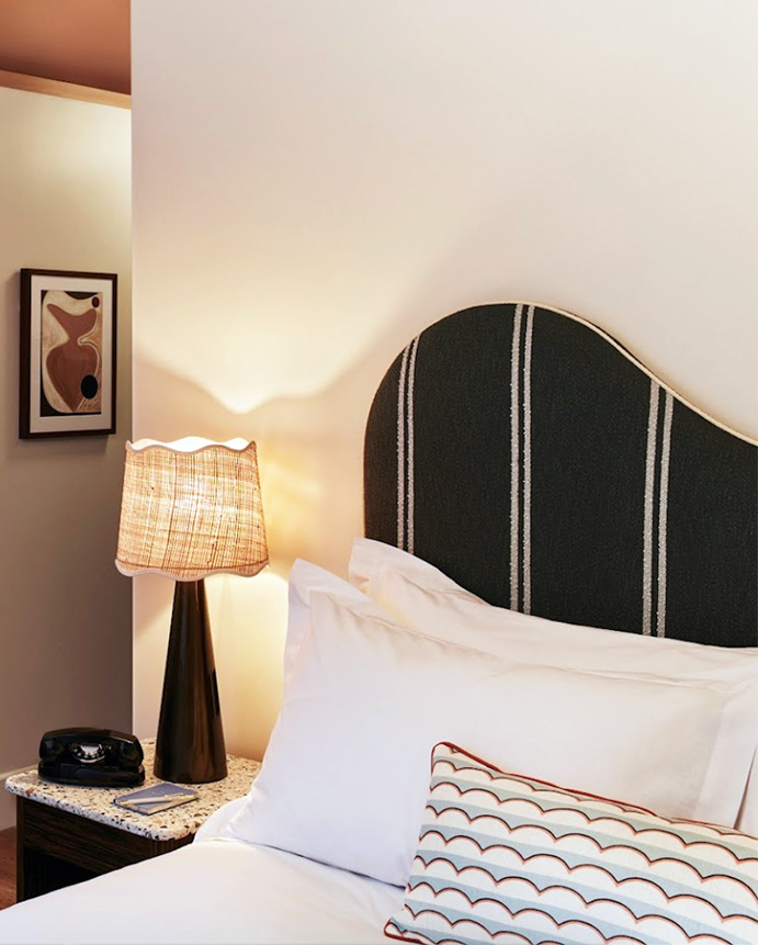So when it came to kitting out Shepherd’s Bush Hox, Laura’s artwork was the natural choice to partner the fluid, geometric design of the 237 bedrooms. She has created two prints just for SheBu featuring organic shapes and earthy tones, in her signature style.