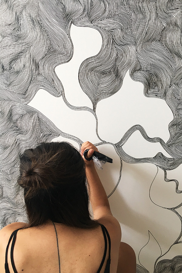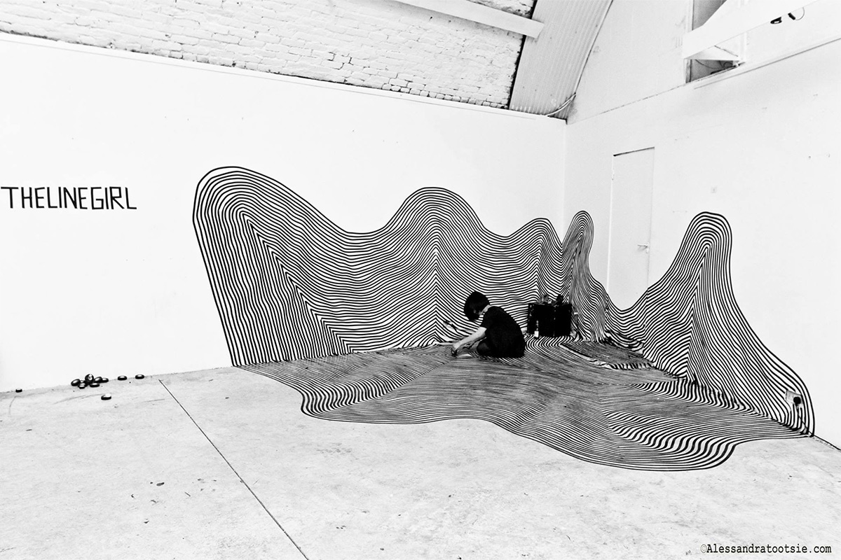 Her Insta bio reads ‘I like Lines & Women’ and her feed is a mesmerising tapestry of swirling lines, candid intimate moments, body art and colour. Welcome to the magical world of The Line Girl – the queer, multidisciplinary artist who uses collage, drawing, installation and performance to explore the infinite subject of ‘lines’.